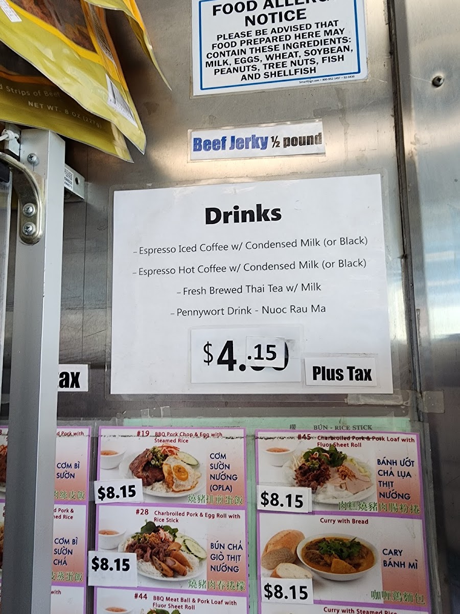 Not just sandwiches, the menu also features hearty dishes like Curry Chicken with Bread, Fried Butter Chicken with Steamed Rice, and flavorful Charbroiled Pork & Egg Roll with Rice Stick. Each dish reflects the authenticity and care that defines Vietnamese cuisine.